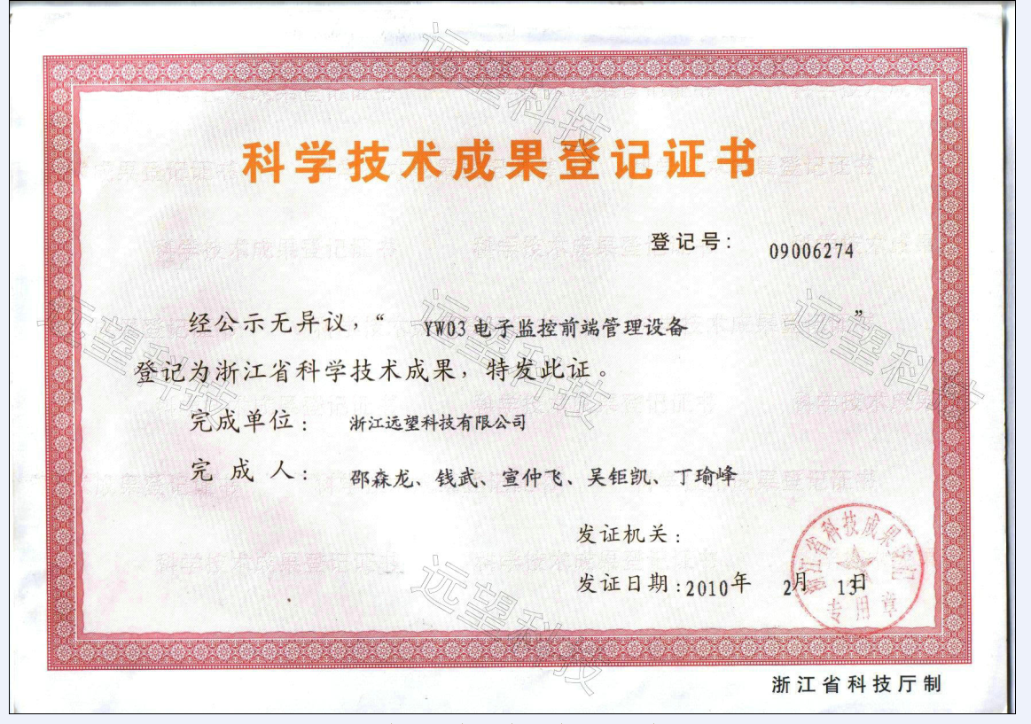 科学技术成果登记证书