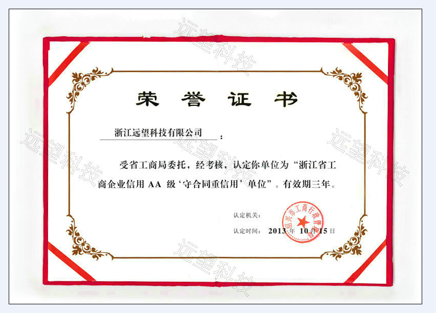 浙江省工商企业信用“AA”级‘守合同重信用’单位