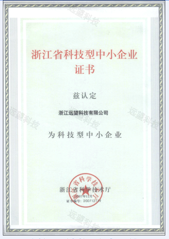 浙江省科技型中小企业证书
